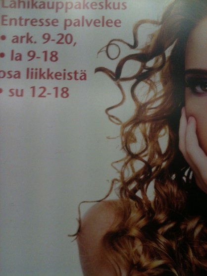 Pretty girl, but the text box on the left side is cutting her hair… At the local shopping mall in Espoo.