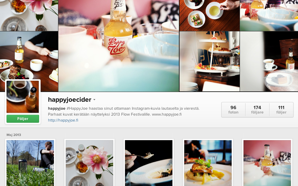 Not many finnish businesses have yet created an instagram account but one good example is a cider brand Happy joe cider, (http://instagram.com/happyjoecider) the visual content is carried out nicely with colorful pictures with a soft focus. I’m sure instagram profiles like this will become increasingly popular among companies in Finland. I tried to google swedish businesses with instagram accounts but found nothing particularly interesting. The biggest american companies, e.g. Starbucks, Victoria’s secret, Virgin america, etc. actively use instagram in their marketing communication.