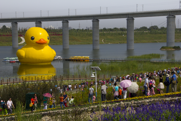 This was on my to do list right after the Great wall, the great Beijing duck! There was another one in Hong Kong before and now they’re everywhere. Since Chinese people love to copy, I’ve heard that they’ve made a lot of diffrent ducks for promotional purposes but I’ve never seen another big one besides this. A lot of stuffed animals with the same design are sold all over the country though.