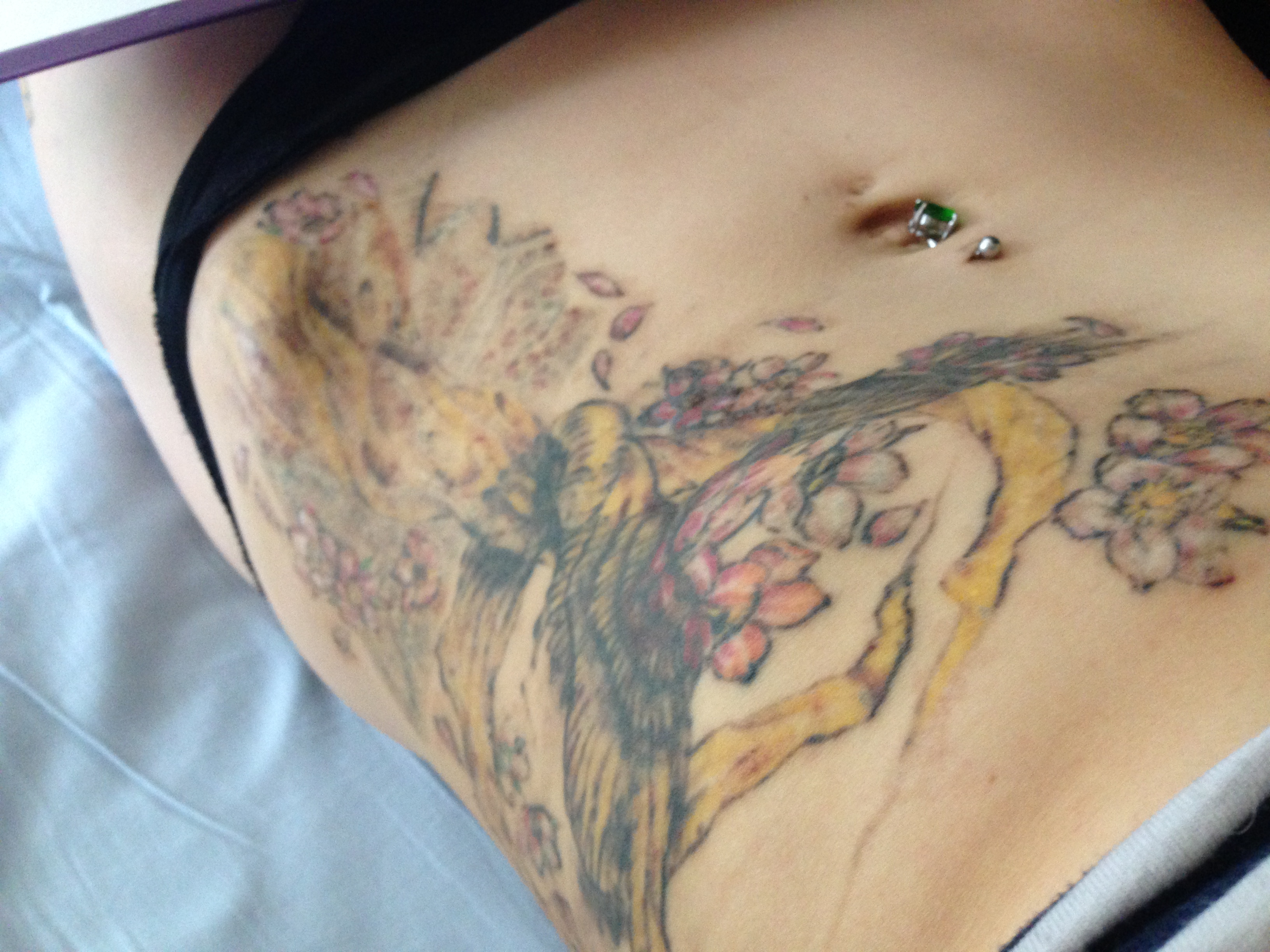 I had been in Finland for the holidays and wasn’t planning to have trip to Stockholm anytime soon, so I decided to give a try for a local plastic surgery place. I only had my arm lasered, as I was tired of all the pain, which was far worse on the ribs than on the arm, so I went. After the session my arm was very, very burned… It healed quite fast, as always with lasering, but it looked so ridiculous I decided to stop having it lasered. I guess the colors faded a little bit, as always, but at this point the change wasn’t as evident as after the first sessions so my motivation was gone.